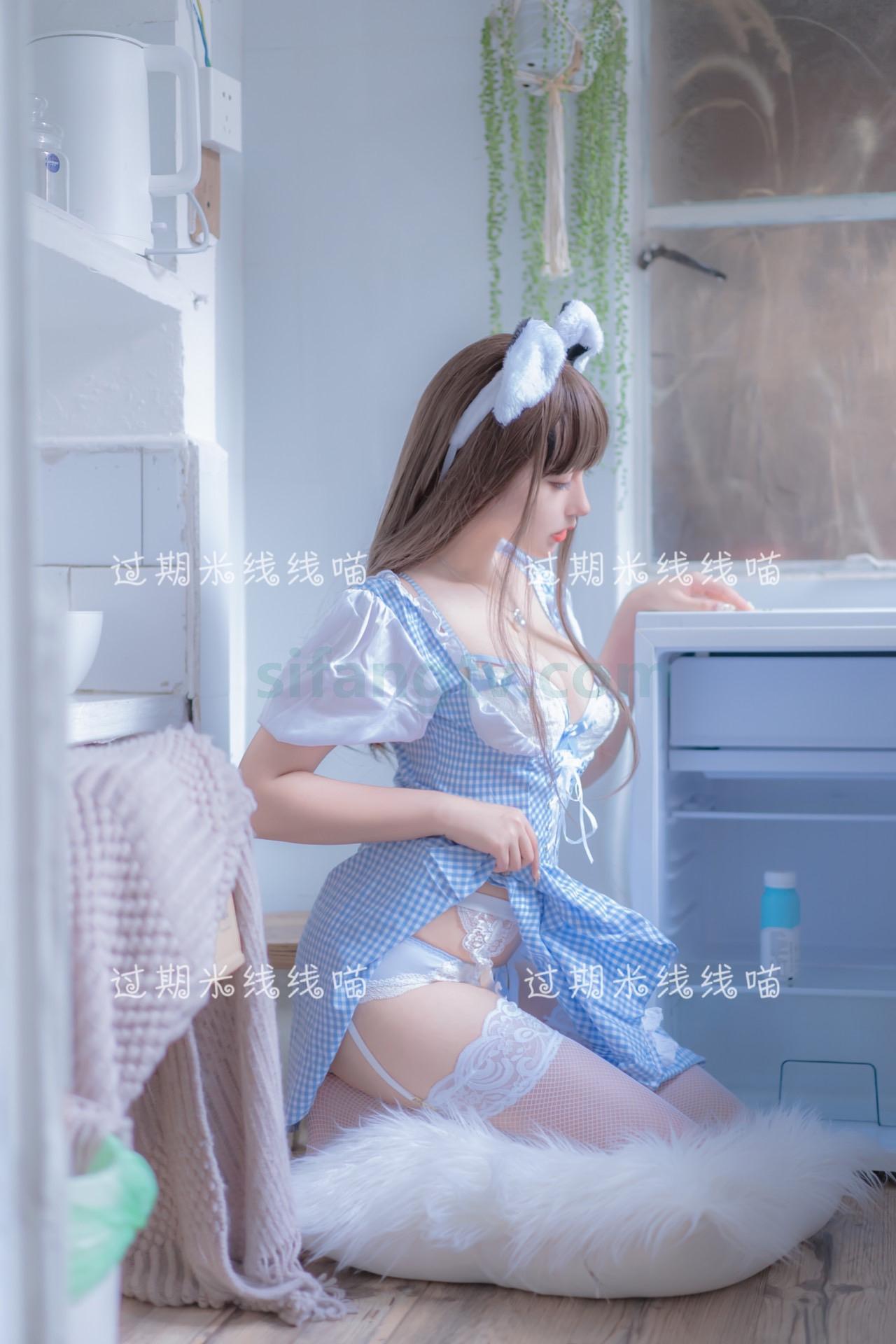 米线私房福利图集—蓝白女仆装