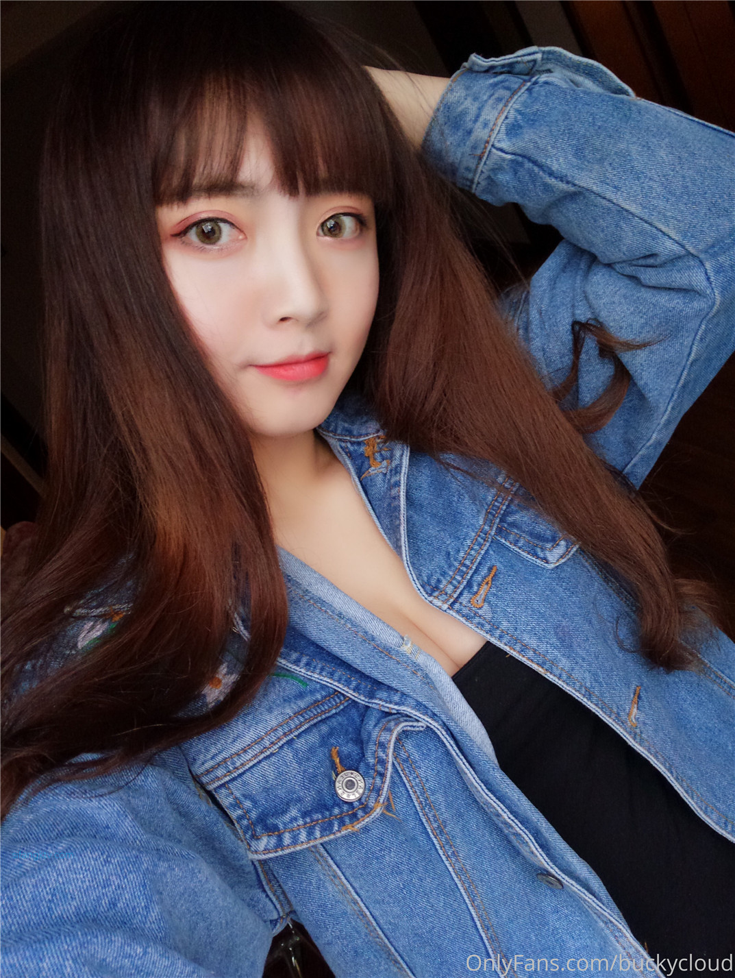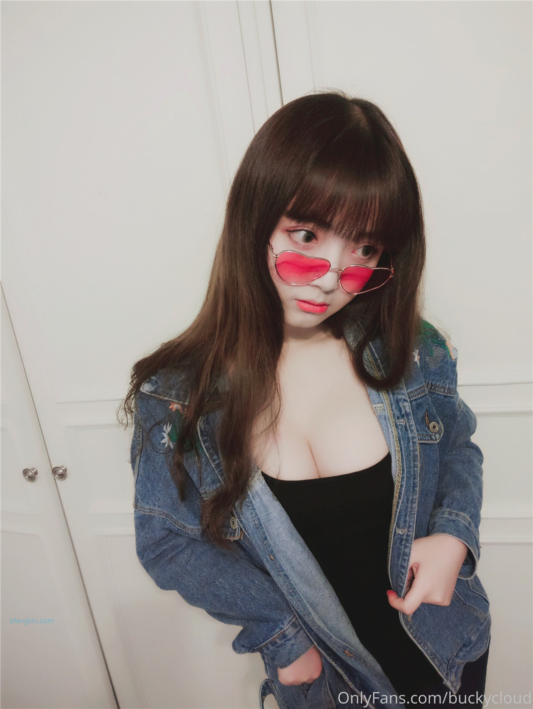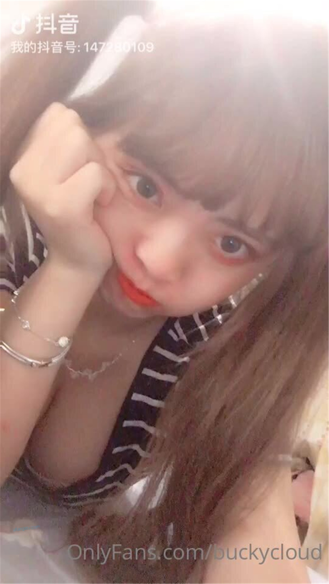 米线私房福利图集—黑色皮衣条纹黑丝