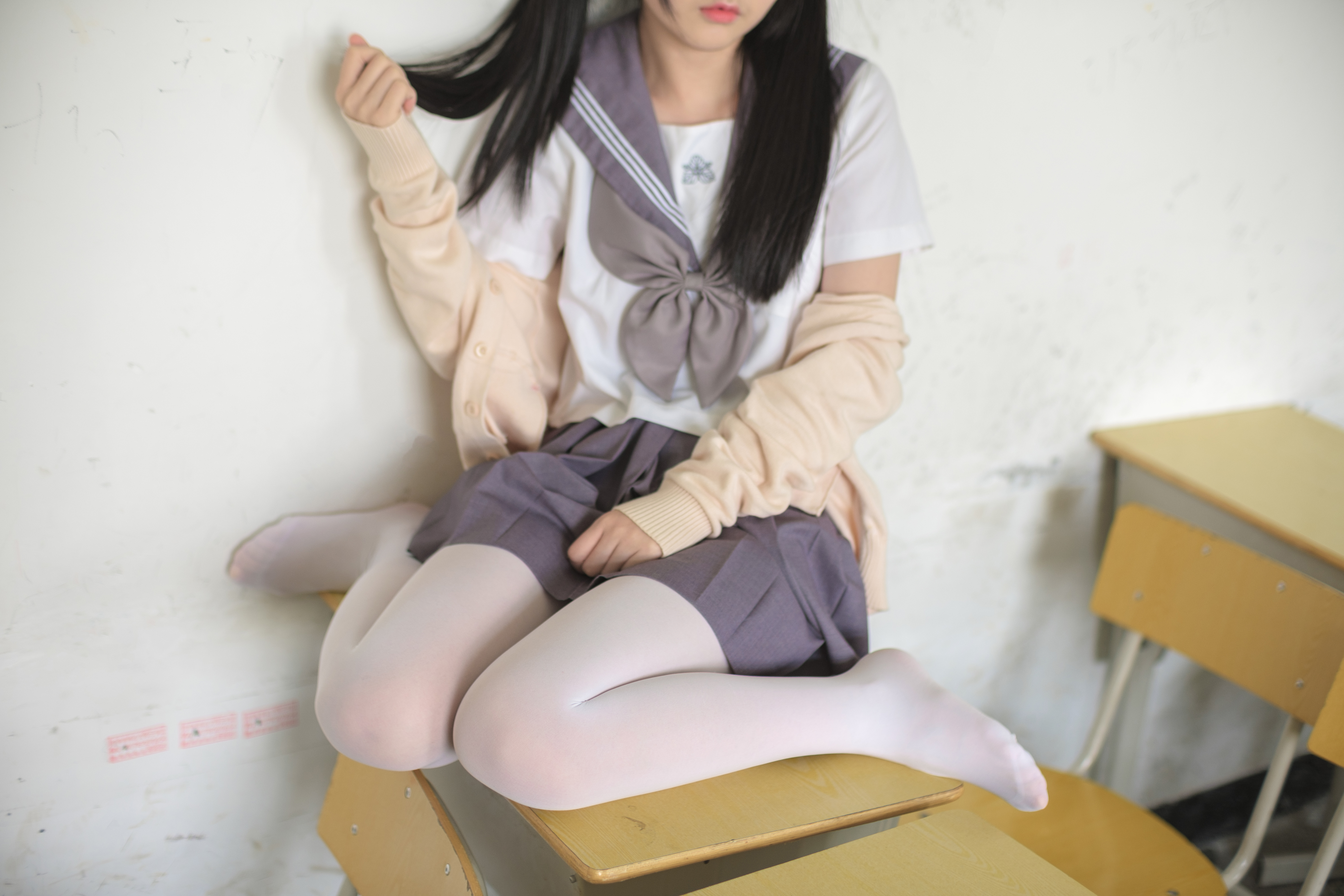 萌白酱福利—蓝色毛衣